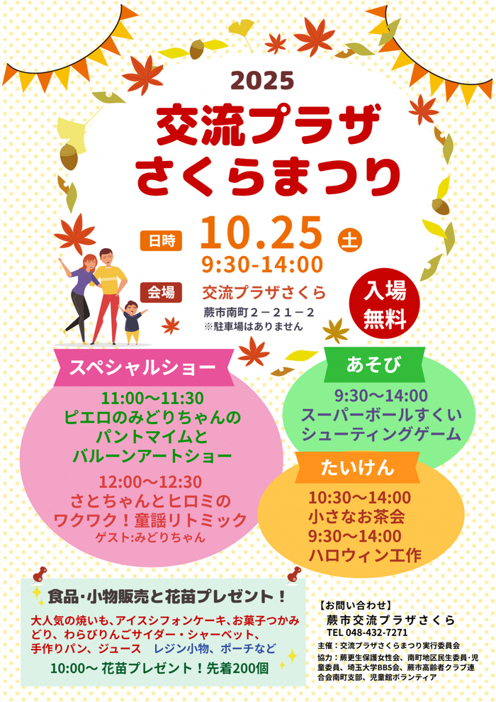 焼いも、アイスシフォンケーキ、お菓子つかみどり、わらびリンゴサイダー・シャーベット