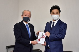 本日、とだわらび青年会議所(JC)の皆さんから、「新型コロナウイルス感染症対策 医療従事者応援寄附金」をいただきました。この寄附金は、とだわらびJCの皆さんが実施したドライブインシアターの収益金やその際に募ったご寄附を蕨市にお寄せいただいたものです。柴田理事長をはじめとする、とだわらびJCの皆さんに、市長として、心から感謝申し上げます。お寄せいただいた寄附金は、新型コロナ対策の最前線で頑張っている医療従事者の応援をはじめ新型コロナ対策のために大切に使わせていただくとともに、これからも、新型コロナから、市民の健康とくらし、市内事業所の営業を守るため、市長として、全力で頑張ってまいります。本日はありがとうございました。